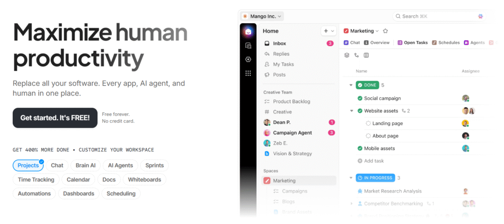 ClickUp focuses heavily on task creation, task completion, and team collaboration.